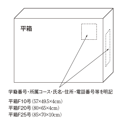 日本画コース、洋画コースの大型作品の課題提出に使用します。 第一種郵便、第四種郵便規格外です。宅配便を利用してください。 ![]() |